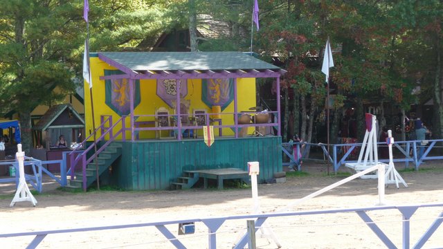 The stage at the jousting field where the King and his Court well watch the jousting matches.