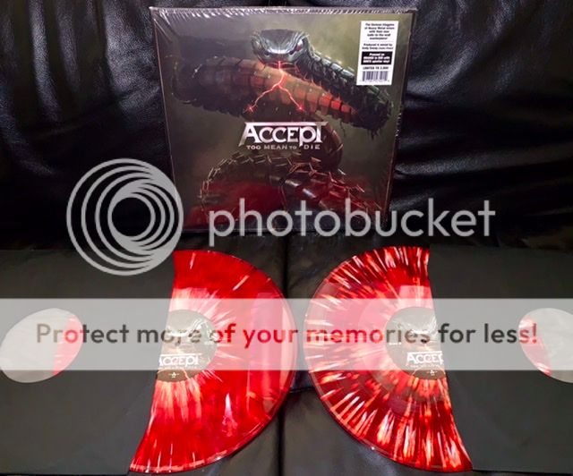 Accept’s latest “Too Mean To Die” on Orange in Red With White Splatter vinyl