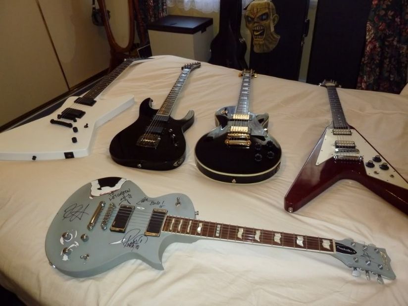 76 Ibanez Flying V(My first guitar) and ESP Grey Truckster(James Hetfield Signature model personally,signed by Metallica in 2010