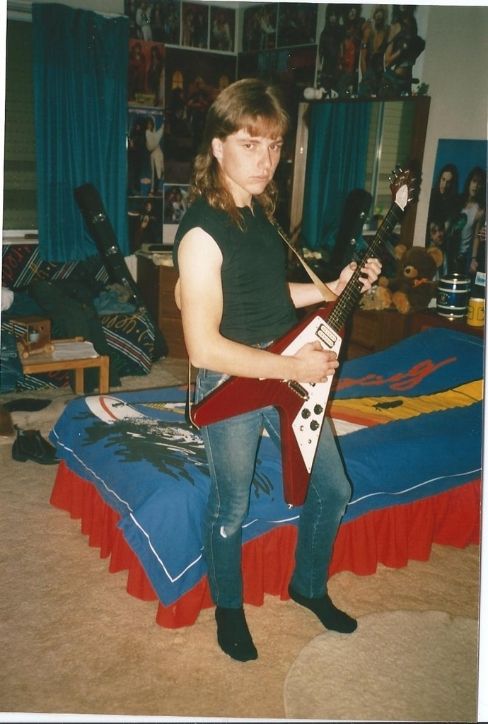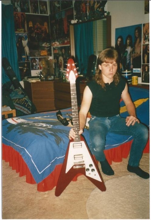 Here's some other photos I dug up from the year 1986 of me posing in my bedroom with my serious head on lol with my first love, a 76 Ibanez Flying V