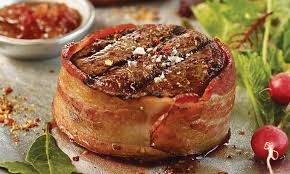 As I mentioned in the Beef/Pork thread, Omaha Steaks bacon wrapped filet mignon.