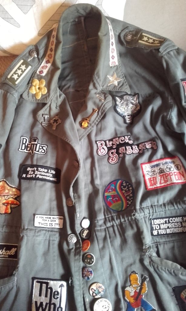 "I didn't wanna go too mainstream with leather or denim. As far as i've gathered, this is a Swedish civil defence jacket from the 50's or 60's. Kinda merging Hippie with Punk/Metal.