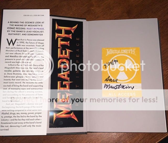 Got my signed Rust In Peace book in today. Nice touch that they included a signed Rust In Peace tour pass dated to the albums original release date along with a bookmark.