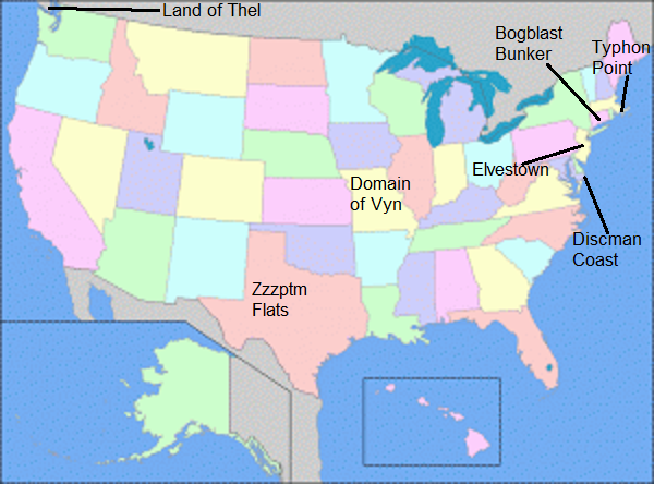 It appears close because this is such an enormous country.  It would be approximately a 3 hour drive for me to get to Bogblast Bunker, and then another 3 hours to Elvestown.  You may have a shorter trip if you went to visit Tyr66.