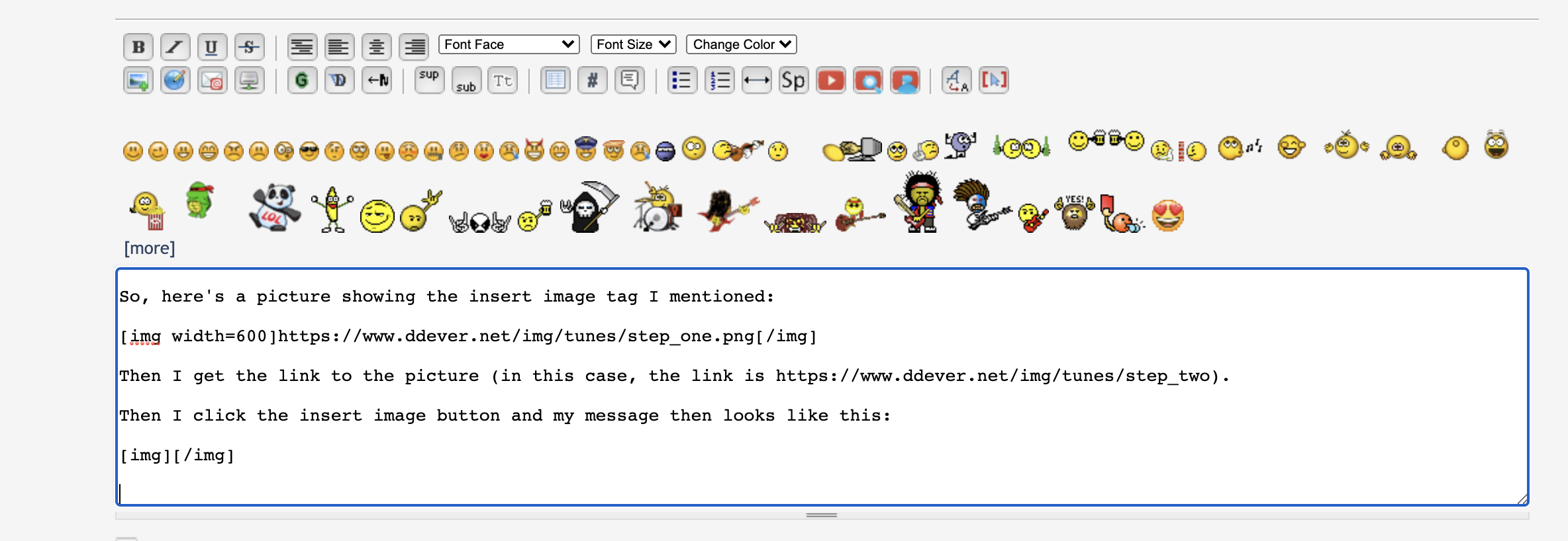 Then I click the insert image button and my message then looks like this: