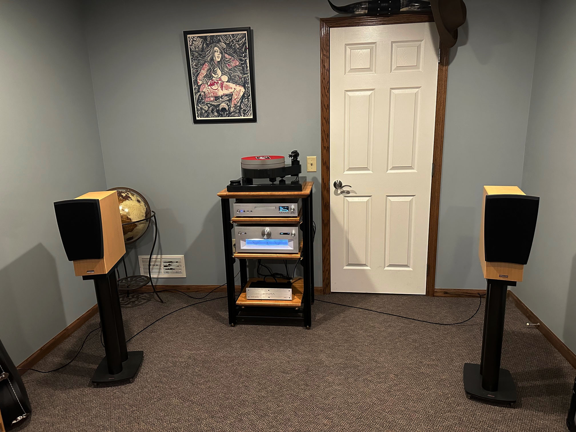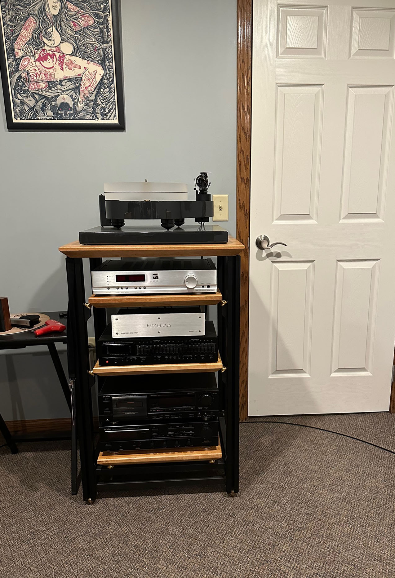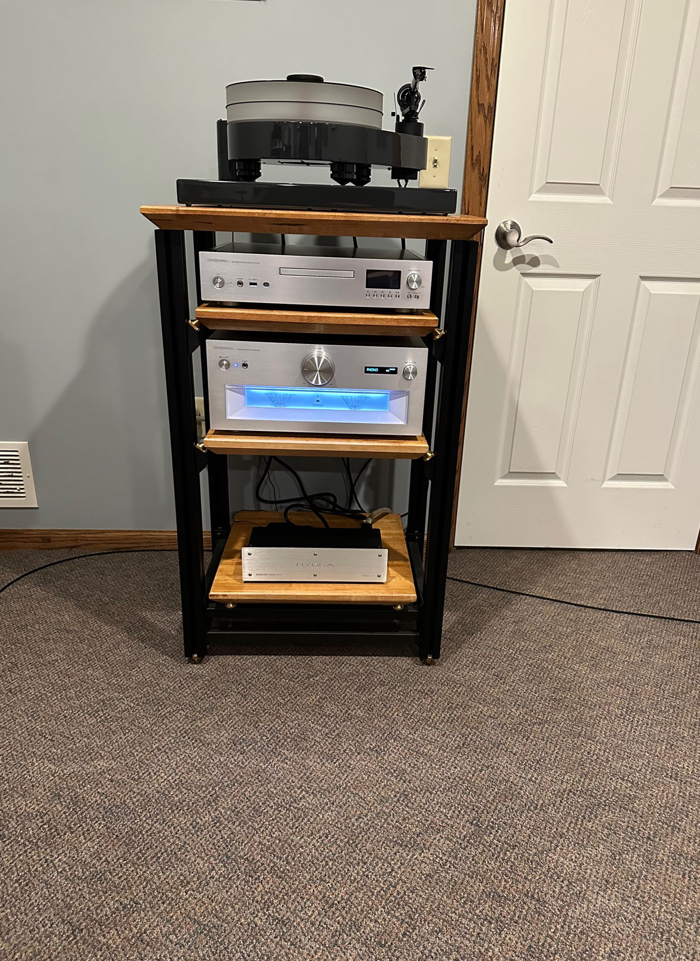 The bra-stuffing has been removed, the turntable remains, and the Simaudio unit is gone. In its place is: