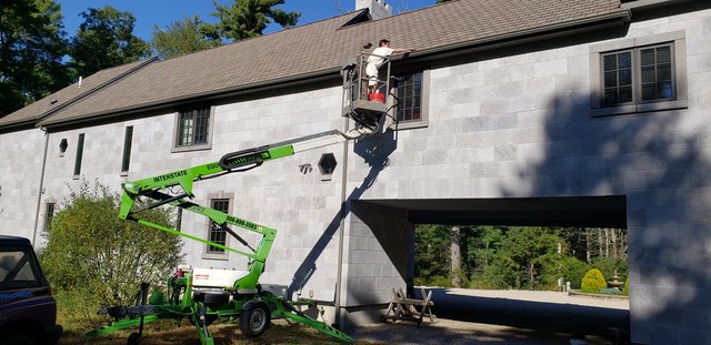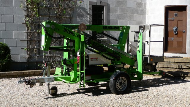 Well I've been putting off cleaning my gutters for a few years now.  This summer I noticed them overflowing during heavy rains, so yesterday I rented a lift-boom just for the day and got to work.  Nice piece of equipment, but it has to be towed into position and set up each time.  I found it much harder to set up than to actually go up and clean.  Needless to say, last night I was pretty tired and sore (the good kind of sore), but got the job done.
